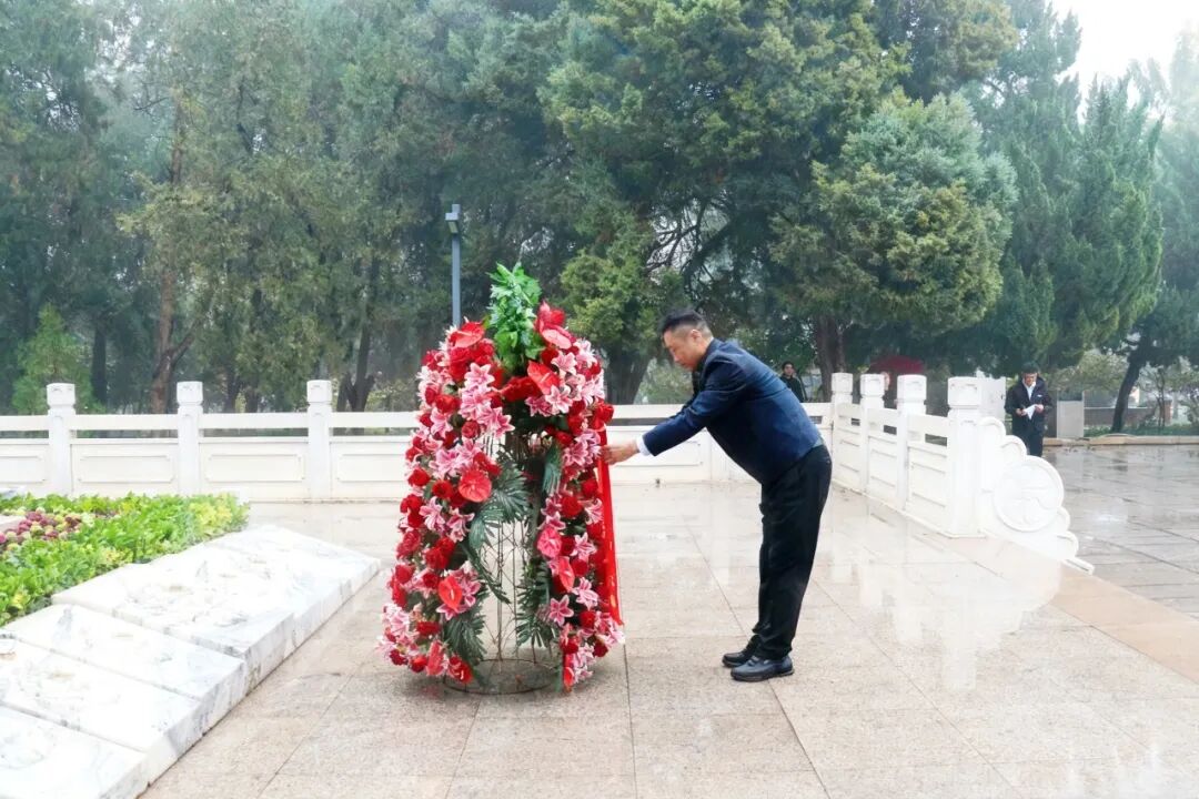 在焦裕禄纪念园,全体党员整装肃立,向焦裕禄烈士陵墓敬献花篮,深切缅怀这位“人民的好公仆”。